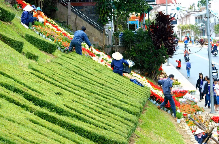 Cận ngày khai mạc Festival hoa Đà Lạt, mọi công việc trở nên hối hả.