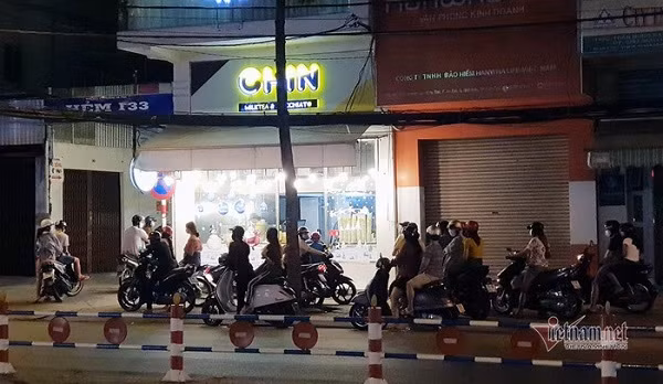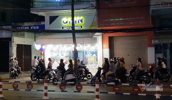 Đến tối, đa phần các quán đã đóng cửa sau khi bị lực lượng chức năng nhắc nhở. Tuy nhiên, nhiều quán bán mang về vẫn để khách tụ tập đông người, không đảm bảo khoảng cách 2m. Trong ảnh, gần 20 người tụ tập trước 1 quán trà sữa trên đường Trần Hưng Đạo vào lúc 20h