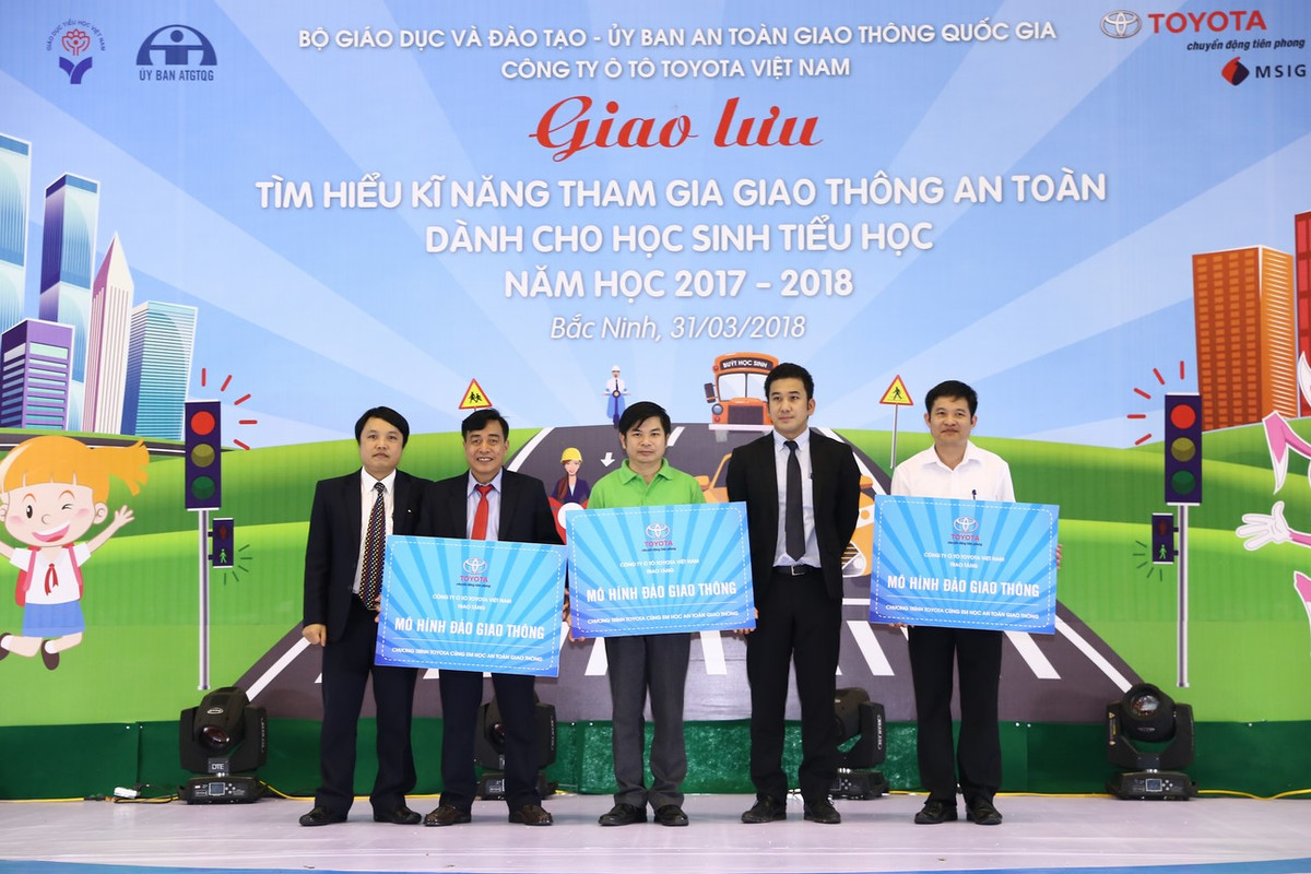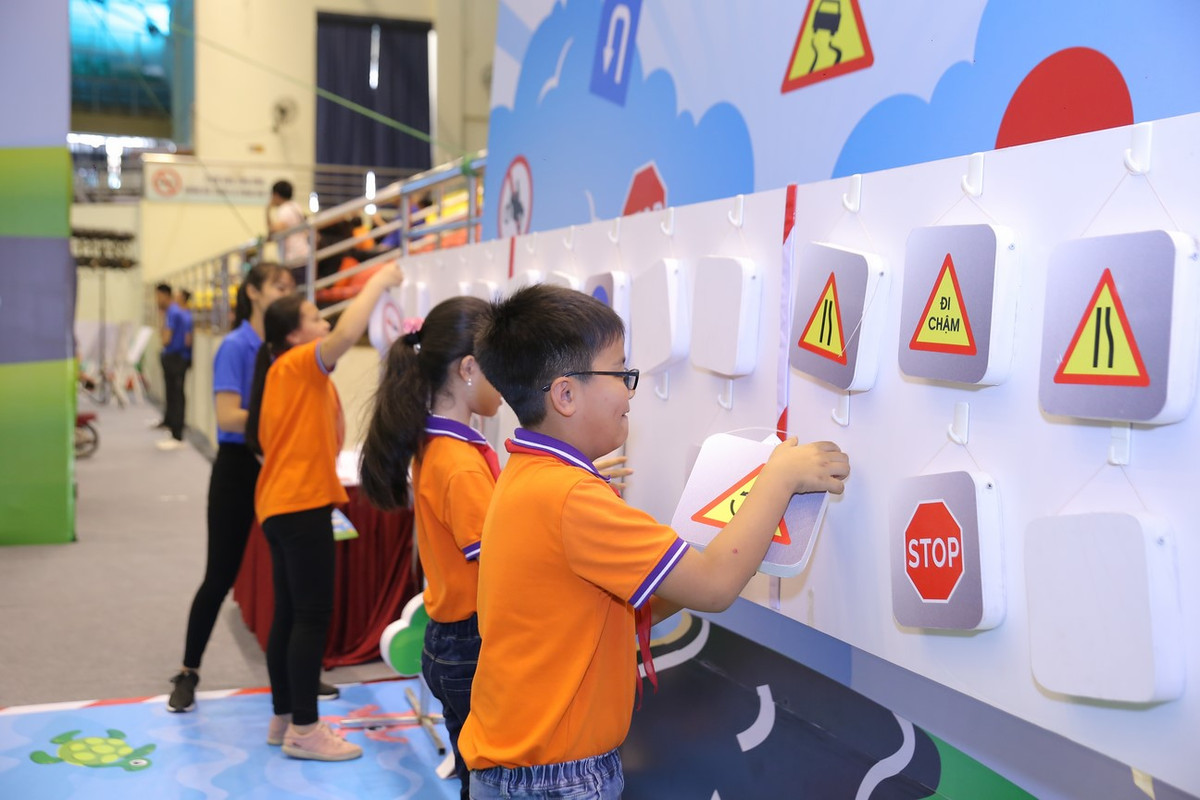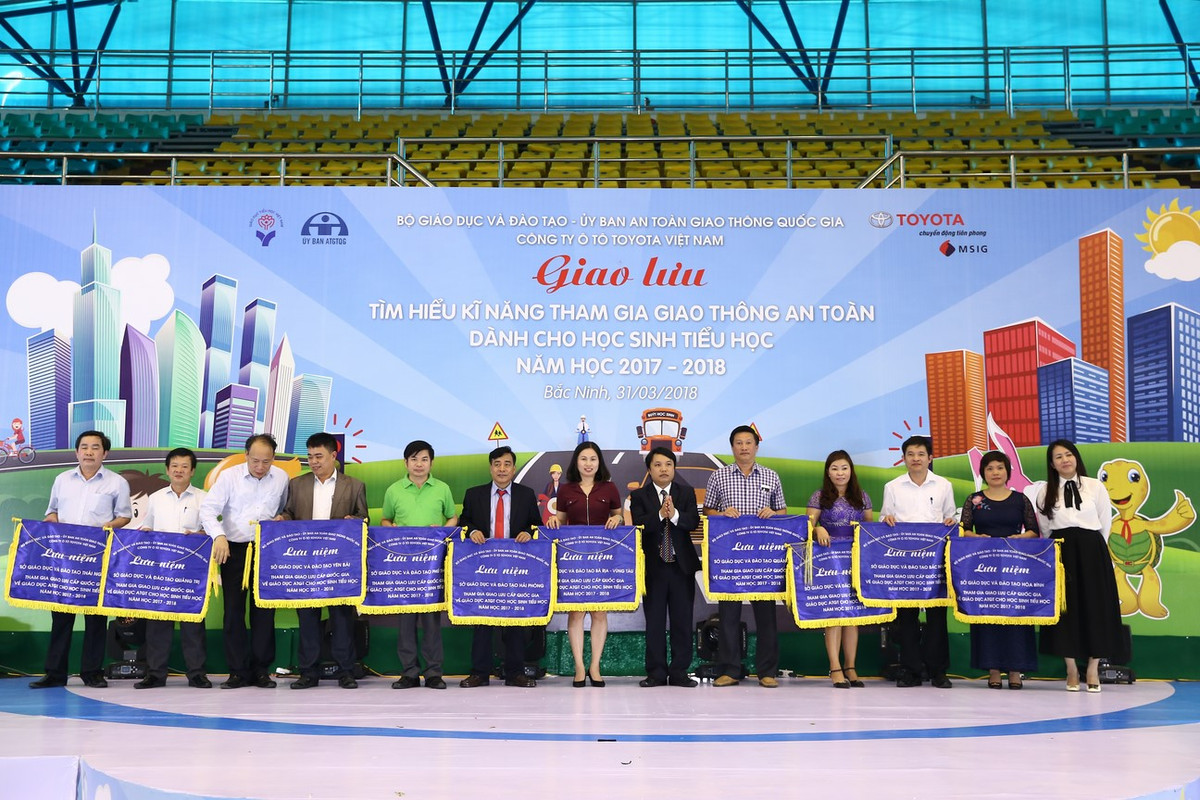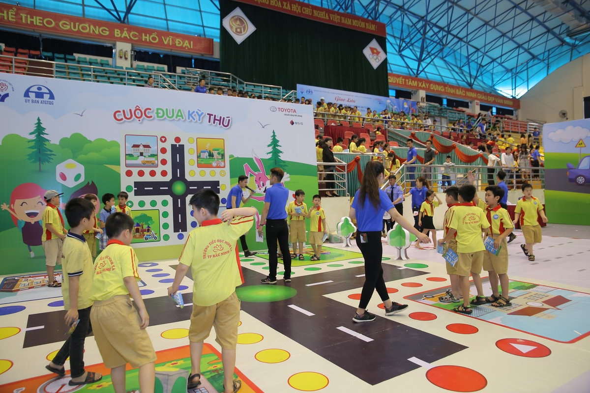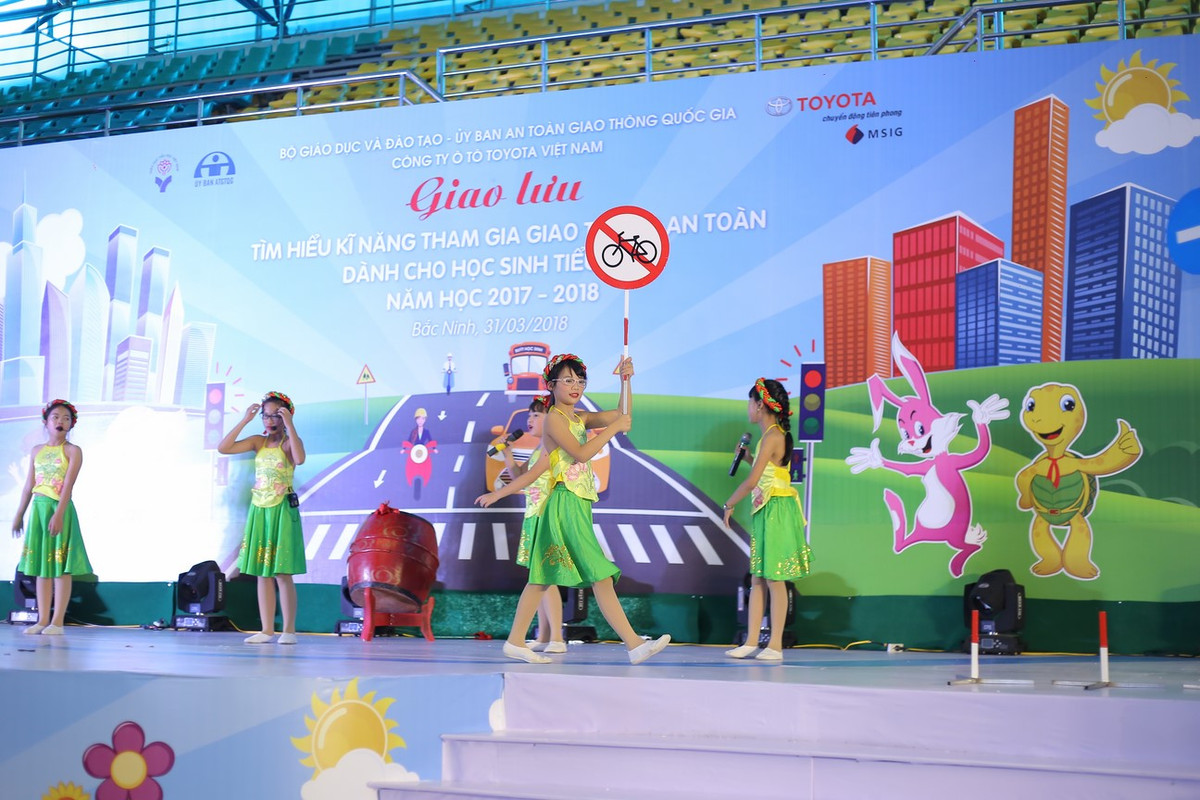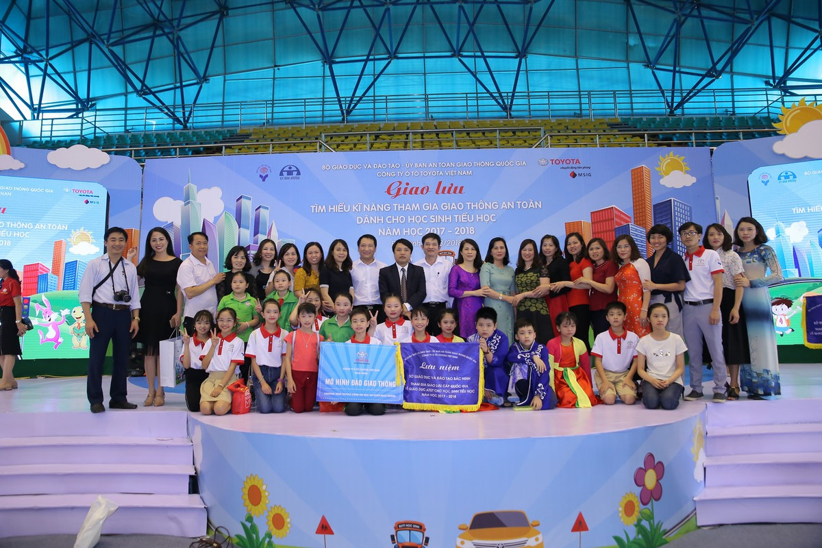 | Các đội tham gia giao lưu và trả lời các câu hỏi về kiến thức ATGT |