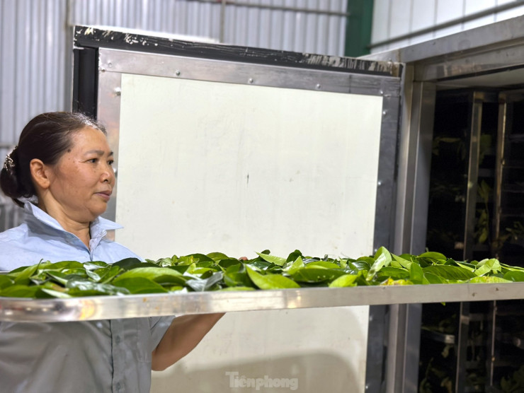 Lá chanh sau đó được cho vào khay bỏ vào máy sấy khô nước rồi chờ thương lái đến thu mua.