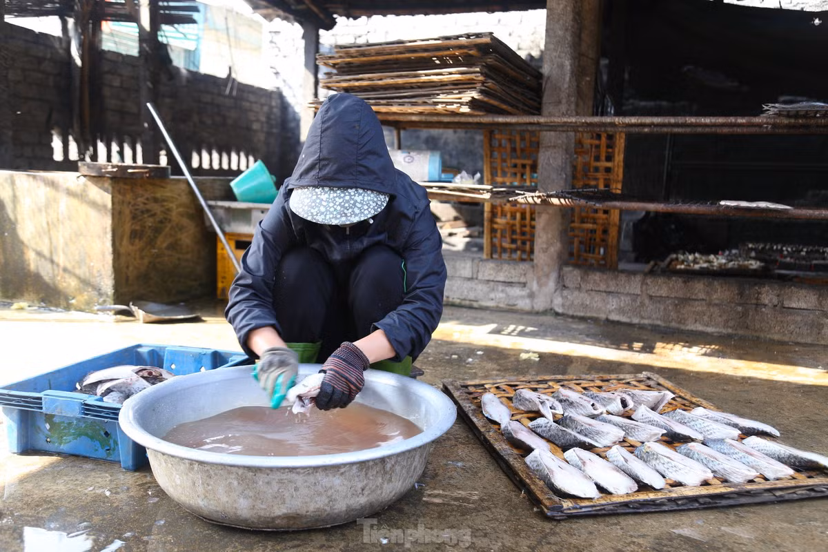 Theo các thợ nướng cá nơi đây, nghề nướng cá phải khom lưng cả ngày, mỗi lúc bước ra khỏi lò thì quần áo, đầu tóc luôn ám mùi tanh nồng của cá, mùi khét của khói. Mỗi ngày, họ được trả công 250.000 - 300.000 đồng. Công việc vất vả nhưng cho thu nhập ổn định nên đa số người dân đều bám nghề.