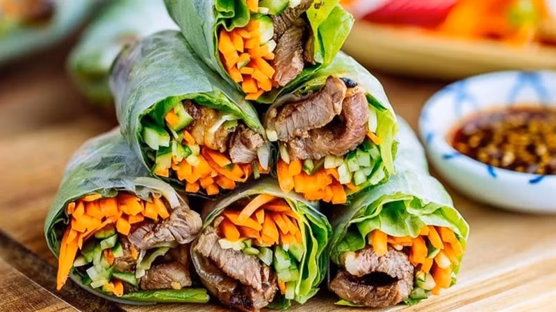 Tiếp nối sự thanh nhẹ đó, các món cuốn chính là lựa chọn "thông minh" để thay đổi hình thức trình bày và cách thưởng thức. Một trong những món ăn có sức mạnh "hồi sinh" vị giác mạnh mẽ nhất chính là cá quả nướng hoặc cá quả hấp hành cuốn bánh tráng. Thịt cá trắng ngần, ngọt thanh, không chứa mỡ xấu, khi cuốn cùng xà lách, diếp cá, dưa leo, khế chua và chuối chát sẽ tạo nên một sự cân bằng hoàn hảo. Điểm nhấn của các món cuốn nằm ở chén nước chấm – có thể là mắm nêm đậm đà hoặc mắm tỏi ớt chua cay – giúp kích thích tuyến nước bọt và tạo cảm giác ngon miệng hơn hẳn so với những miếng bánh chưng dẻo dính.