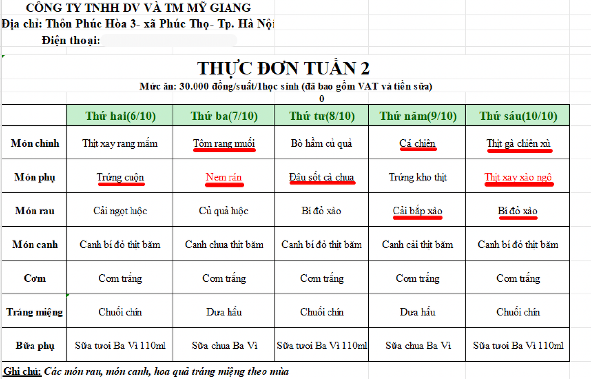 Công ty Thương mại Mỹ Giang là đơn vị cung cấp suất ăn cho nhiều trường trên địa bàn xã Phúc Thọ.