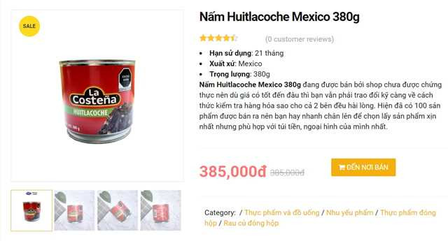 Ngoài ra, để tiện cho việc vận chuyển và mua bán, nấm huitlacoche còn được đóng hộp (đông lạnh). Đặc biệt, người tiêu dùng Việt giờ đã có thể mua được nấm huitlacoche đóng hộp trên chợ mạng với giá khoảng 385.000 đồng/380g. Một hộp có hạn sử dụng lên đến 21 tháng.