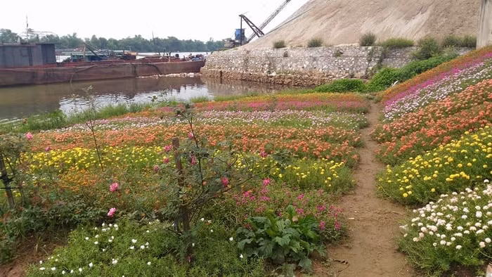 Cả một cánh đồng hoa mười giờ với nhiều luống mười giờ các màu sắc đang nở rộ ven sông khiến khung cảnh nơi đây trở nên hết sức thơ mộng.