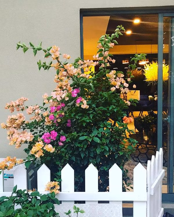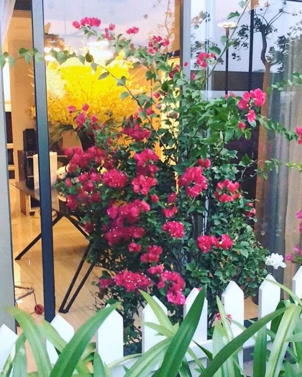 Ngoài trồng hoa giấy màu đỏ - hồng truyền thống, Vũ Khắc Tiệp còn chọn cả hoa giấy nhiều màu tô điểm cho ban công căn hộ.