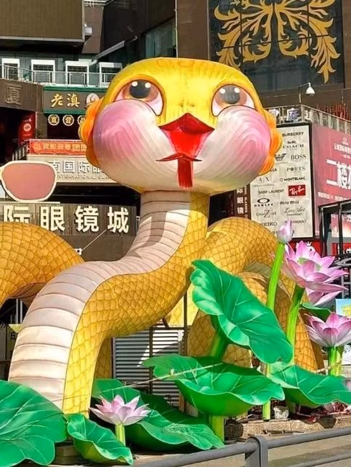 Nhiều nơi trong thành phố Bắc Kinh cũng được trang trí các mô hình linh vật rắn, chào mừng năm mới Ất Tỵ 2025. Ảnh: Weibo.