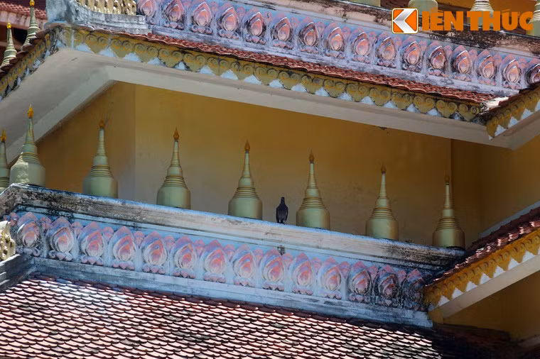 Trên mái trang trí các dải họa tiết dạng stupa (phù đồ, hay tháp xá lợi trong văn hóa Phật giáo Nam Tông).