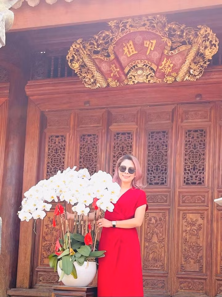 Thanh Thảo đến Đền thờ Tổ nghiệp của Hoài Linh cầu an cho showbiz và thắp hương cố nghệ sĩ Chí Tài.