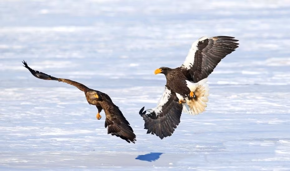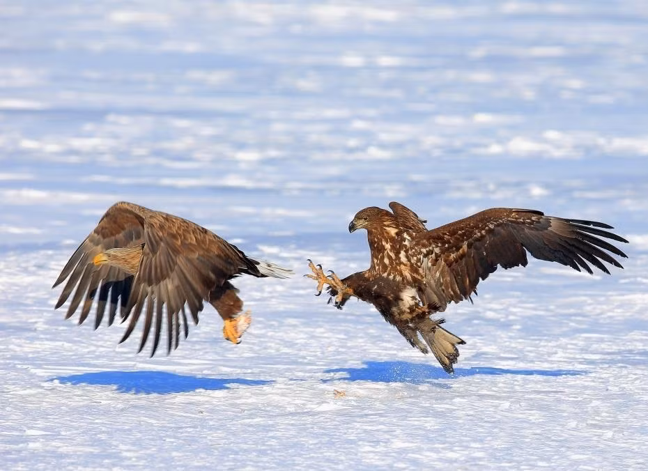 Những khi căng thẳng, những con chim đại bàng cũng không ngại trở mặt với nhau, kịch chiến trên bầu trời, tất cả đều vì miếng ăn.