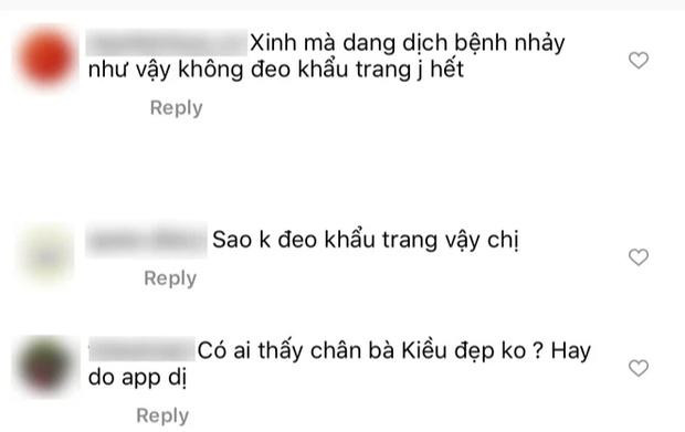 Dù TPHCM đã chuyển sang giai đoạn bình thường mới nhưng việc đeo khẩu trang khi ra ngoài, đặc biệt là ở nơi tập trung đông người là việc làm phản ánh ý thức chung tay chống dịch cho cộng đồng và cho chính bản thân mình. Tuy nhiên, Ngọc Trinh dường như không để tâm đến điều này khi liên tiếp quay clip trong tình trạng quên khẩu trang. Mới đây, khi chia sẻ đoạn clip TikTok cùng những người giúp việc, chân dài Trà Vinh không chỉ bị soi dùng app kéo chân hơi lố mà còn không có bất cứ thiết bị nào che chắn giọt bắn cả.