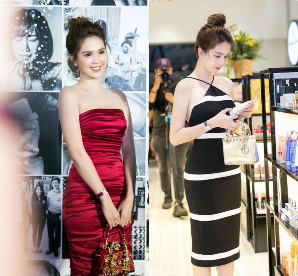 Ngọc Trinh trở nên quyến rũ hơn khi lựa chọn những chiếc váy ôm sát thân hình chuẩn đồng hồ cát.