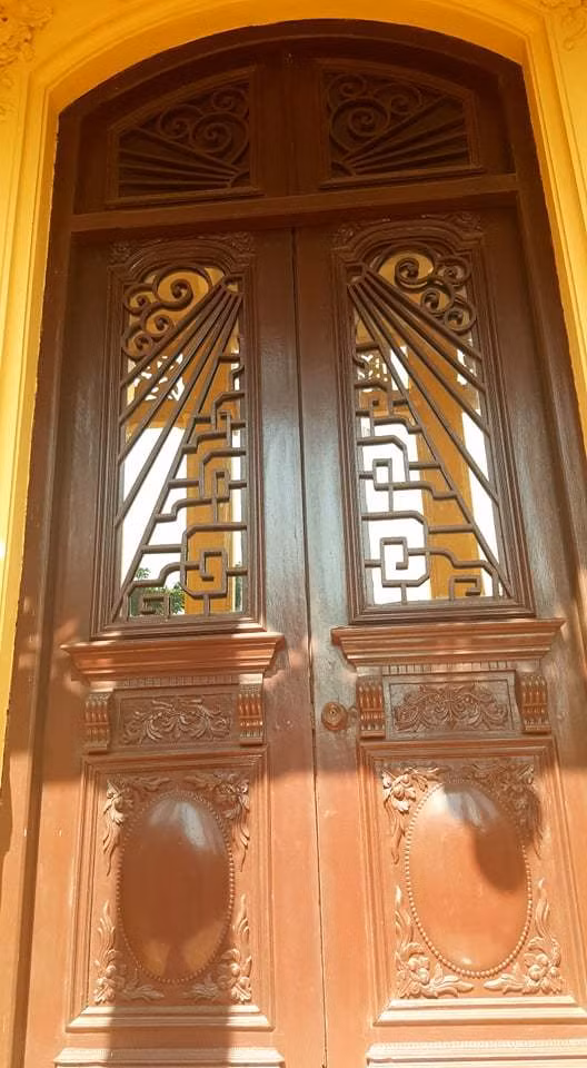 Tất cả các cánh cửa ra vào, cửa sổ và cửa thông gió trong biệt thự đều được làm từ gỗ lim. Trải qua gần 100 năm nhưng hệ thống cửa vẫn chắc chắn, chưa có dấu hiệu bị mối mọt.