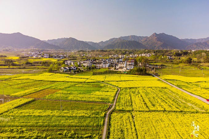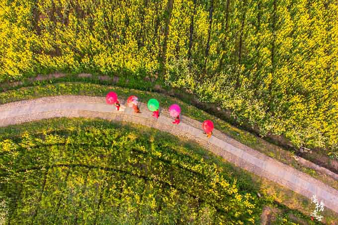 Vào mùa xuân, hoa cải vàng nở rộ khắp nơi, từng con đường nhỏ uốn lượn phủ đầy hoa cải, đâu đâu cũng thấy một màu vàng ươm.