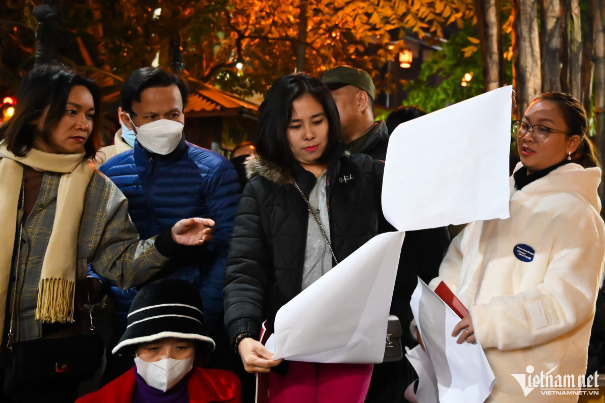 Nhà chùa đã phát ghế, chiếu miễn phí nhưng do số lượng khách đông nên mọi người phải mang theo ghế, giấy báo, vỏ hộp để ngồi.