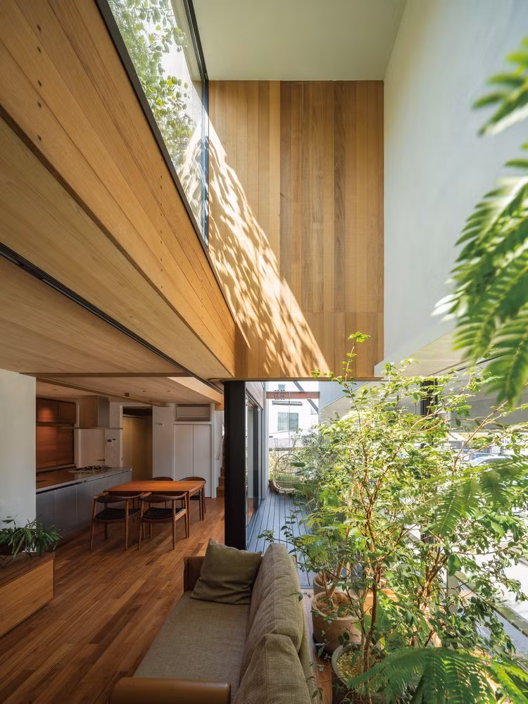 Cả mặt bằng lẫn mặt cắt, các sân thượng và phòng nội thất được bố trí xen kẽ, tạo ra một môi trường xanh mát gợi nhớ đến cảm giác sống giữa những tán cây rừng.