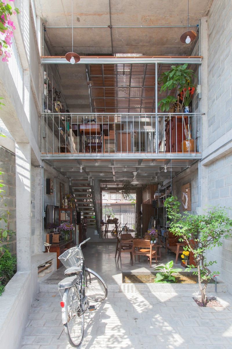 Mặc dù được bao quanh bởi gạch khối nhưng không cảm giác bí bách ngược lại thông thoáng, trong lành nhờ cây xanh và giếng trời.