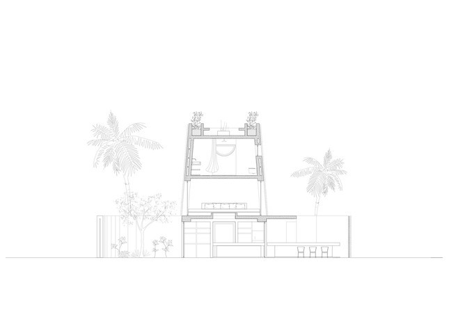Thiết kế mang tính giải pháp nhất chính là bức tường gạch được xây dựng từ với cấu trúc đặc biệt, các viên gạch được sắp xếp có quy luật tạo ra những ô gió nhỏ để trao đổi không khí trong ngoài.