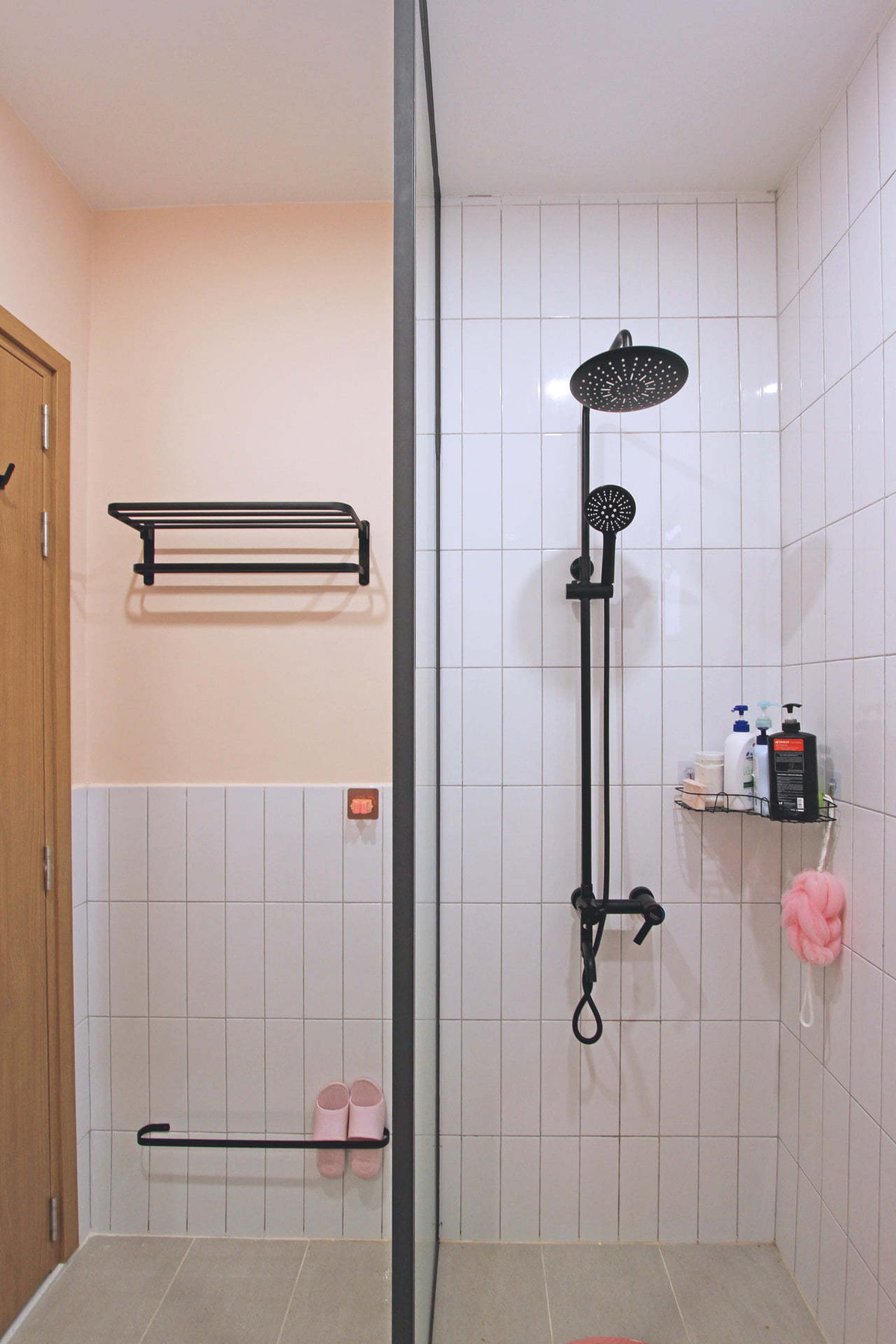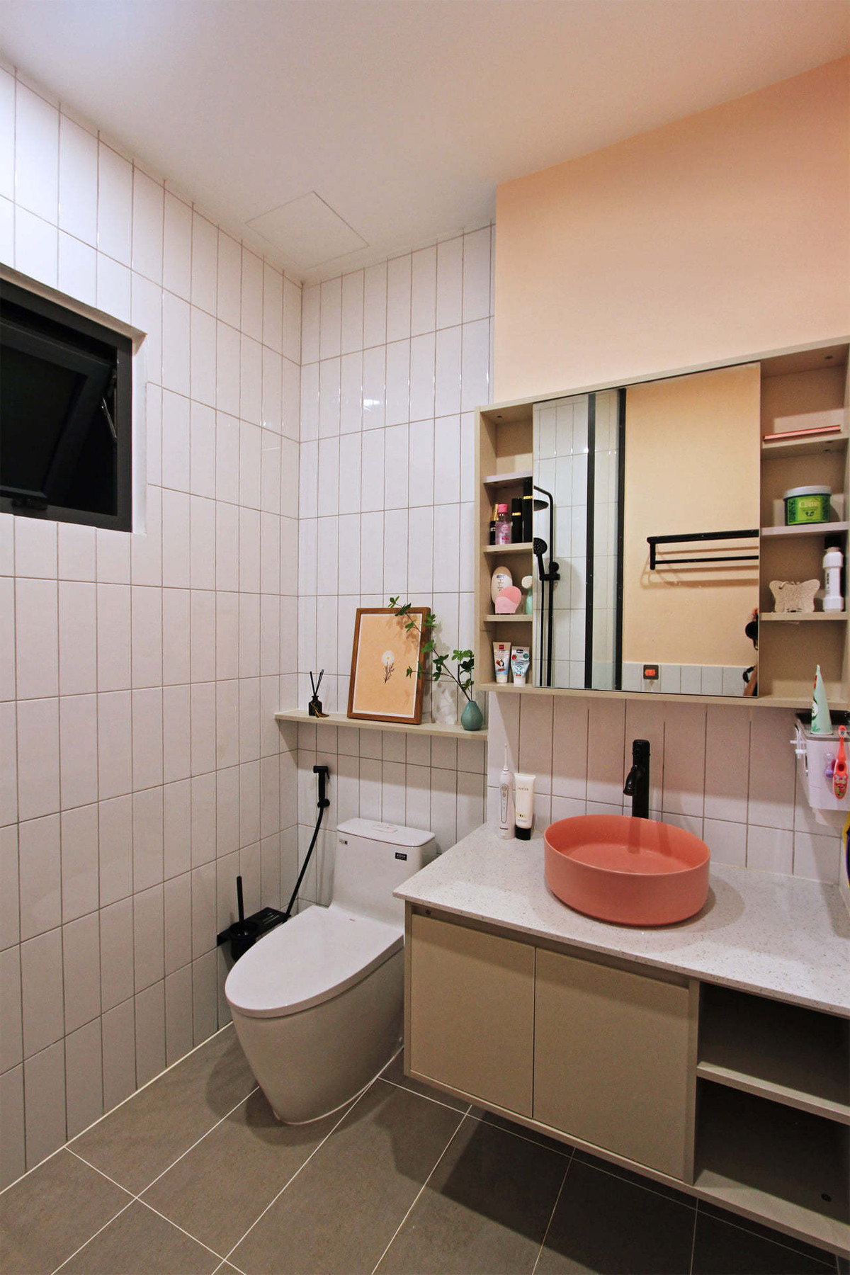 Phòng vệ sinh màu hồng cam đáng yêu cho con gái nhỏ.