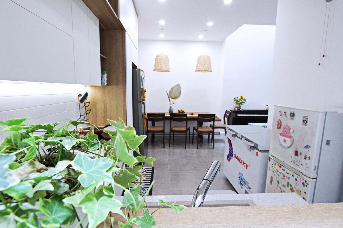 Ngôi nhà phố ở quận 12 (TP.HCM) được xây dựng cho gia đình 3 thế hệ chung sống, dựa trên nhu cầu sống xanh, tận hưởng không gian mát lành và thoáng đãng. Bao quanh nhà được điểm xuyết bởi màu xanh tươi rói của cây cối. Đặc biệt, có cả khoảng vườn rau nho nhỏ “bò” trên ban công.