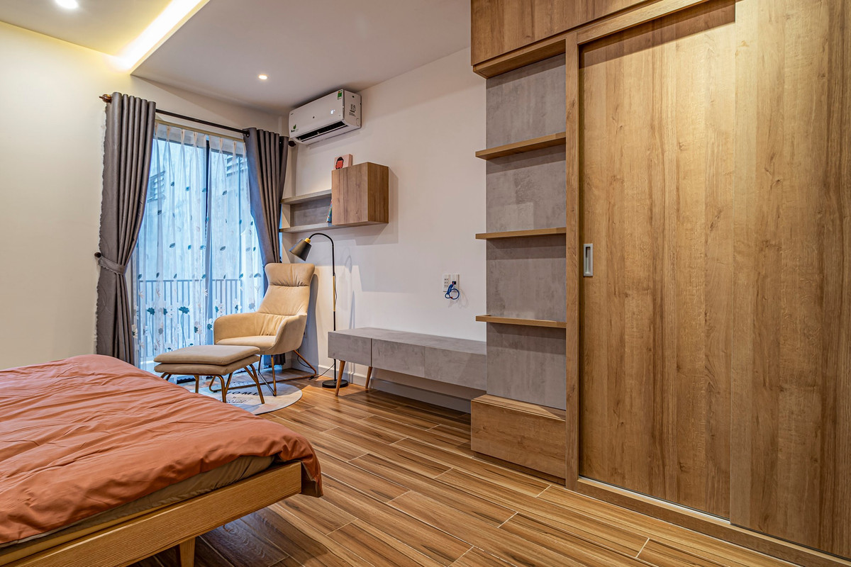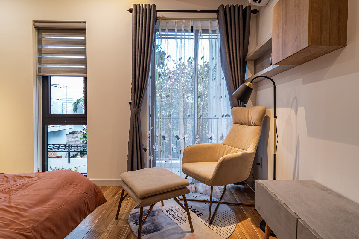 Ba phòng ngủ mang phong cách khác nhau nhưng đều có ánh tự nhiên, công năng tiện nghi.