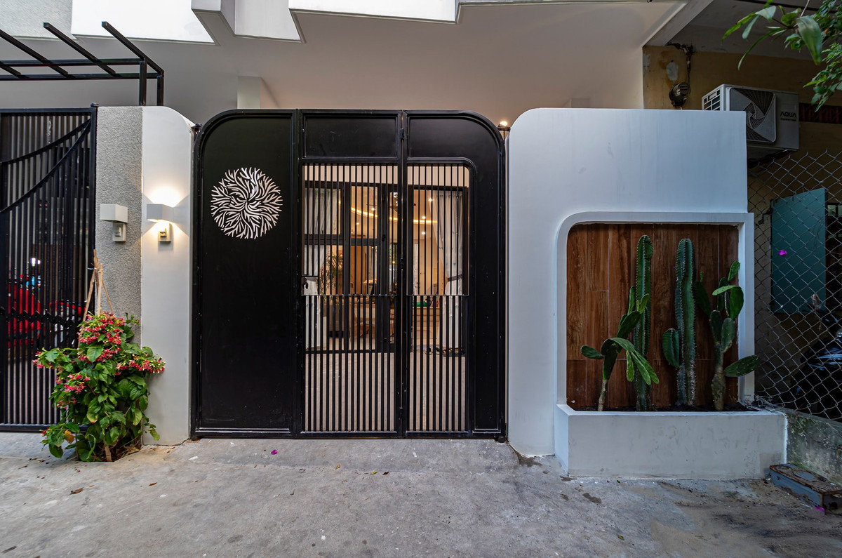 Ngôi nhà được chú ý từng chi tiết nhỏ, ngay cả mặt tiền cũng mang vẻ đẹp độc đáo với cổng sắt hoa văn và tường trang trí.
