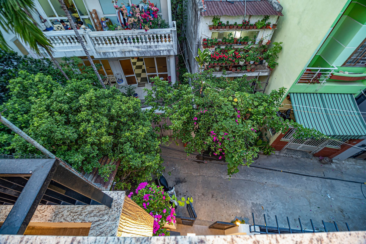 Cây cỏ, hoa lá tràn ngập từ trong ra ngoài. Xung quanh khu vực cũng có nhiều cây xanh lấy bóng mát.
