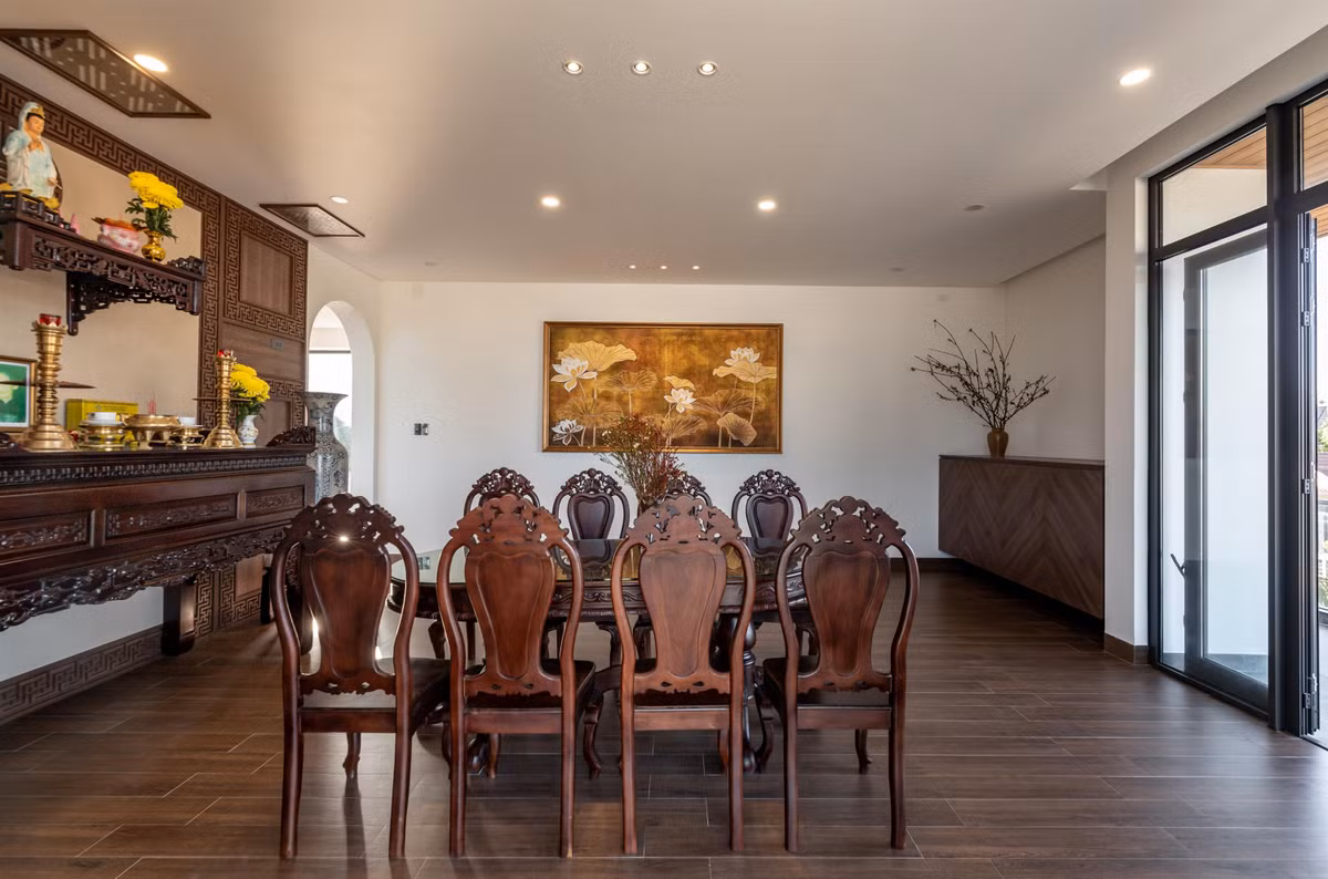 Không gian phòng ăn được đặt tại trung tâm công trình.
