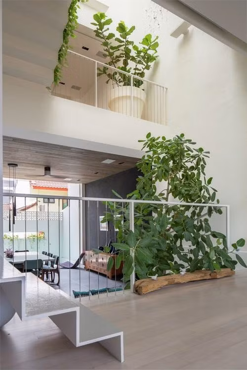 Những cây xanh trong ngôi nhà cho phép chủ nhân cảm nhận được sự chuyển động của ánh sáng tự nhiên suốt cả ngày, đồng thời với không gian xanh đã hạn chế những tác động khắc nghiệt của thời tiết.