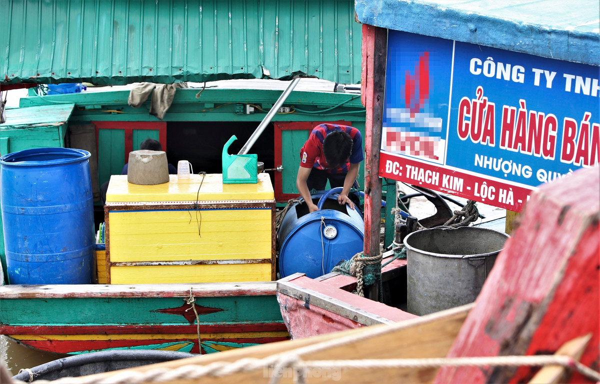 Ngư dân chuẩn bị xăng dầu, ngư lưới cụ, đá xay và thực phẩm chuẩn bị cho chuyến biển dài ngày.