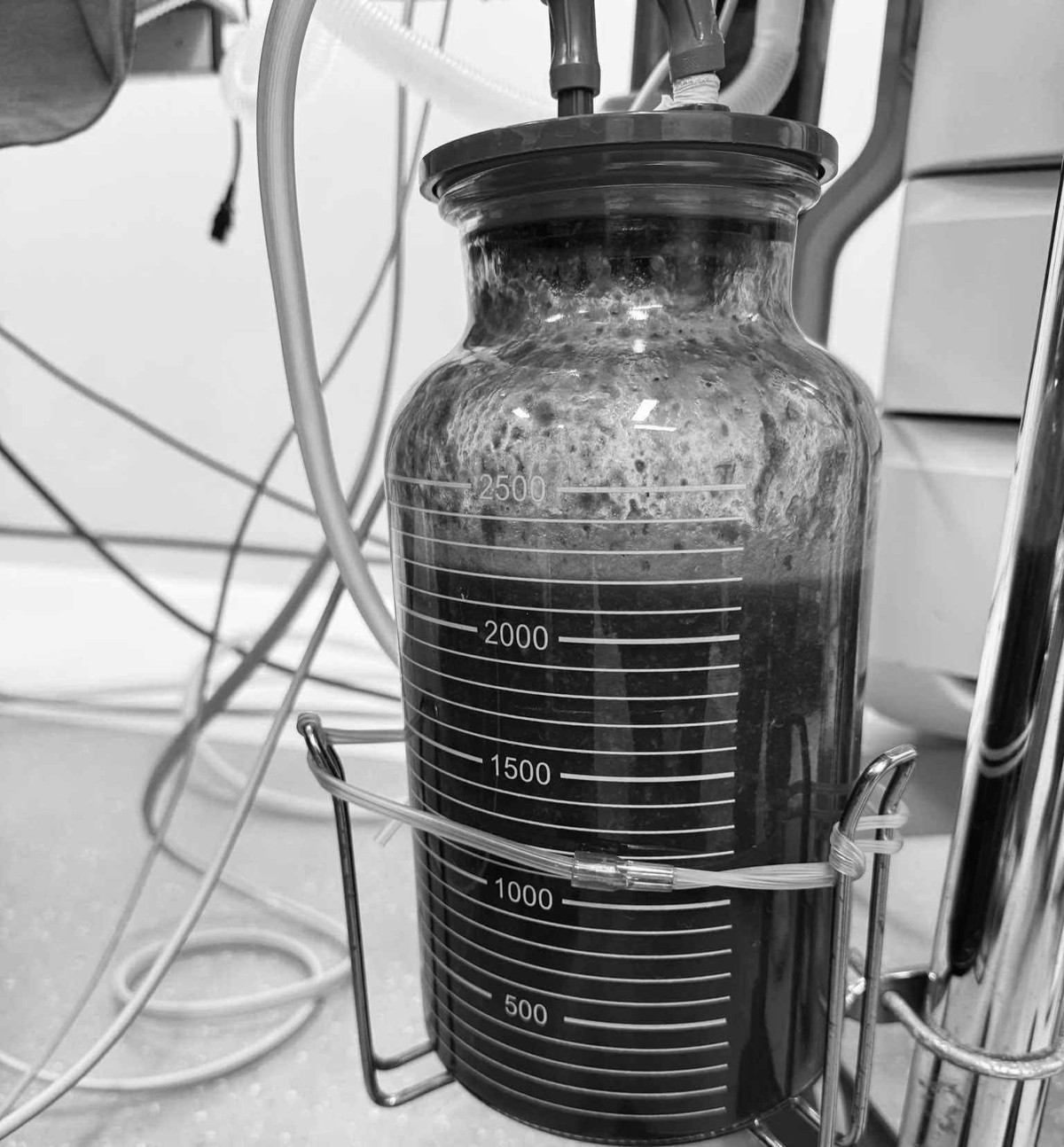 Hơn 2 lít dịch máu viêm, mủ, silicon được nạo hút từ ngực của nữ bệnh nhân. Ảnh: BSCC