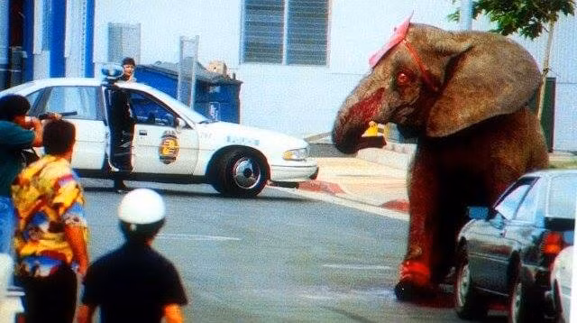 Khi ra đến ngoài đường, con voi chạy trốn được khoảng 30 phút thì bị bao vây bởi cảnh sát và bị bắt ít nhất 86 phát.