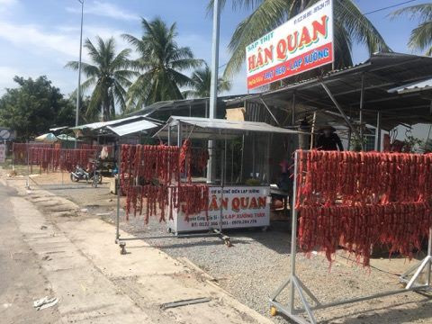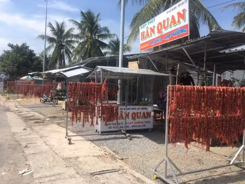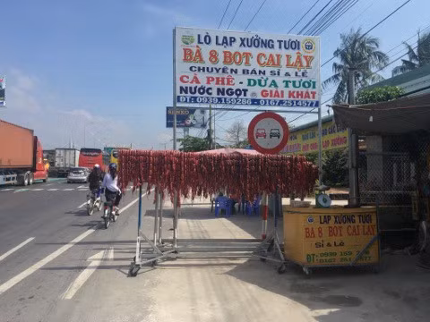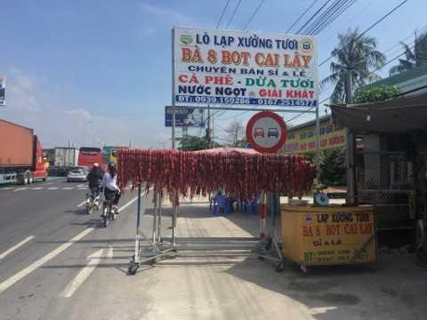 Theo ghi nhận của chúng tôi, có khoảng 20 điểm bán thịt heo được đặt 2 bên quốc lộ 1A, hướng từ Cần Thơ lên TP HCM. Ngoài việc bán thịt heo, các điểm còn trưng bày lạp xưởng tươi trên các cây sào bằng sắt, trông rất bắt mắt. Có điểm "ăn theo" trạm BOT Cai Lậy khi lấy tên cơ sở của mình là "Lạp xưởng tươi Bà 8 Bot Cai Lậy".