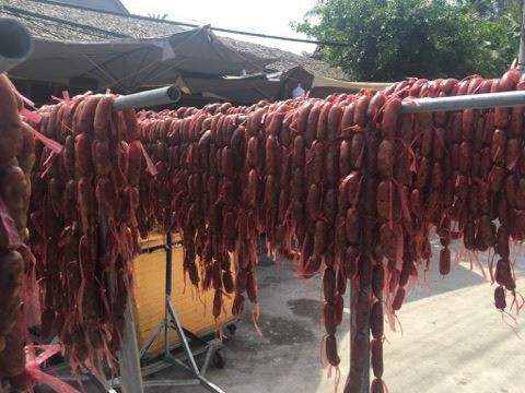 Tuy nhiên, nhiều người đi đường không khỏi lo âu về vấn đề vệ sinh vì nhiều điểm đã trưng bày lạp xưởng "tràn" ra vệ đường để chào mời khách hàng, nhìn rất mất vệ sinh.