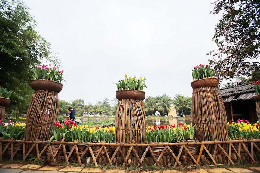 Người dân đổ xô đi ngắm cánh đồng hoa tulip Hà Lan tại Hà Nội