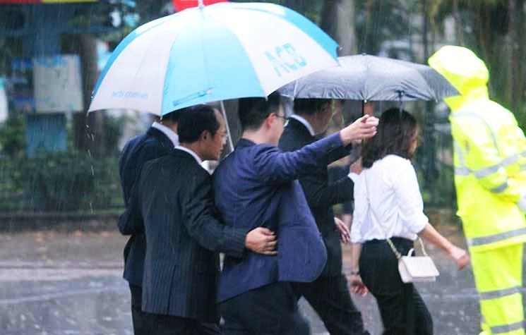 Cuối giờ chiều ngày hôm nay (26/9), các quận nội thành Hà Nội bất ngờ mưa lớn. Tuy nhiên, bất chấp cơn mua, nhiều đoàn từ các cơ quan đơn vị, tổ chức xã hội và nhân dân các địa phương tiếp tục đổ về Nhà tang lễ Quốc gia (số 5 Trần Thánh Tông, Hà Nội) để vào viếng, tiễn biệt Chủ tịch nước Trần Đại Quang.