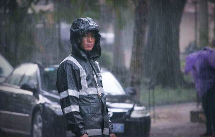 Dưới cơn mưa, lực lượng chức năng làm nhiệm vụ trước cửa Nhà tang lễ Quốc gia vẫn chốt trực để đảm bảo an ninh trật tự trong lễ Quốc tang.