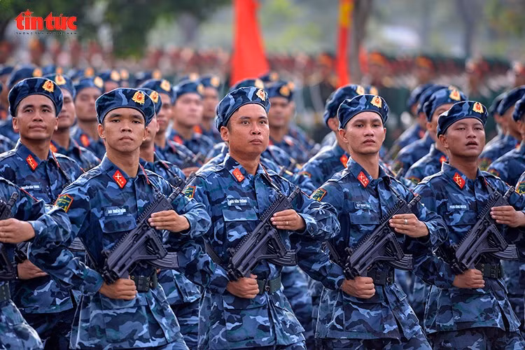 Khối chiến sĩ tác chiến điện tử rèn luyện nghiêm túc giữa trời nắng gắt.Các chiến sĩ Quân chủng Phòng không - Không quân tập luyện với cường độ cao.Đội hình khối đặc công trong phần hợp luyện sáng 9/7.