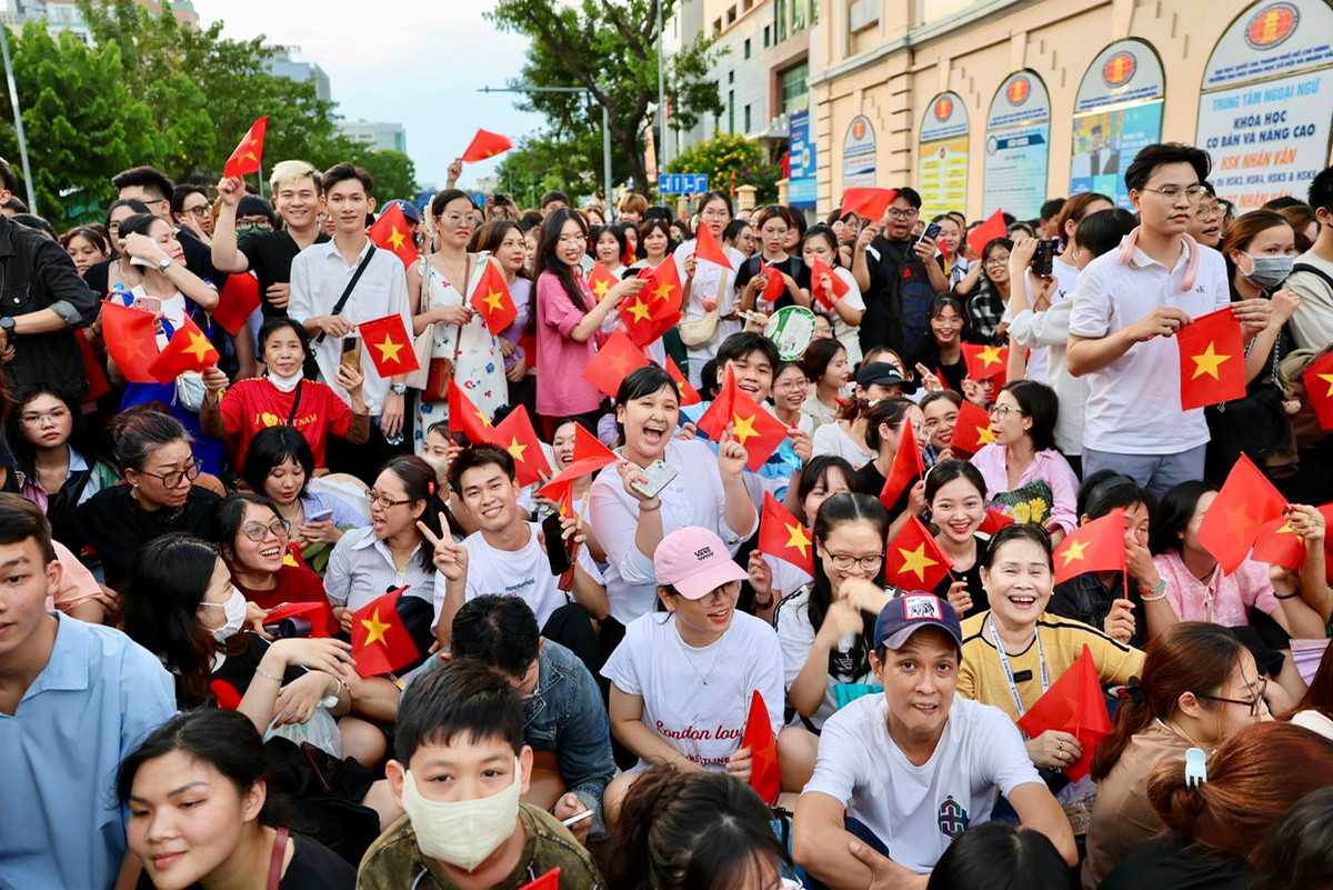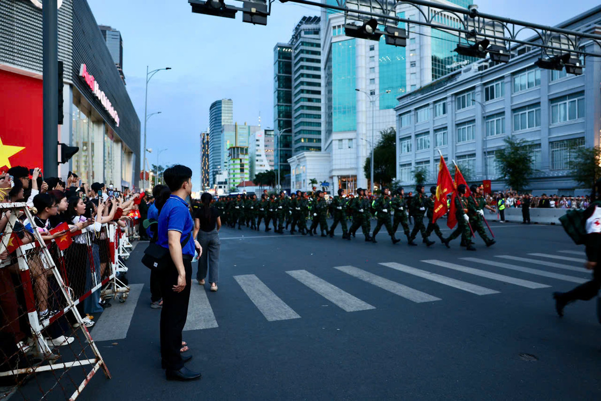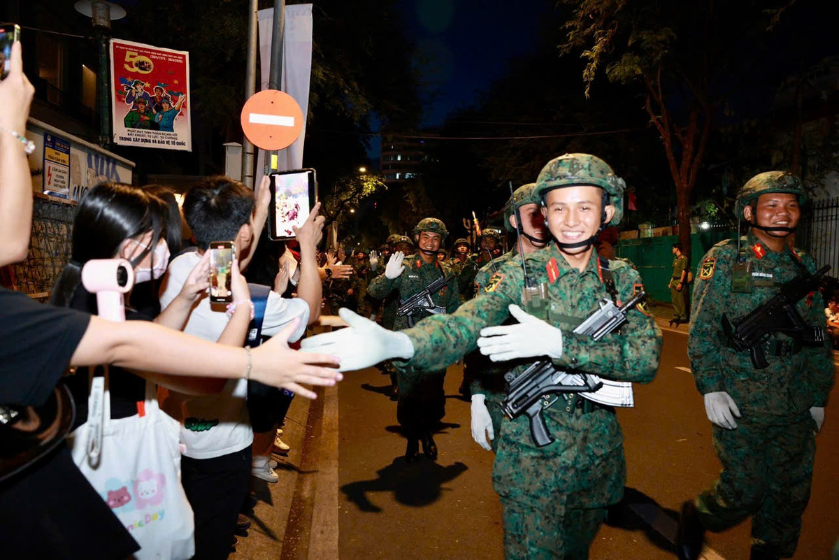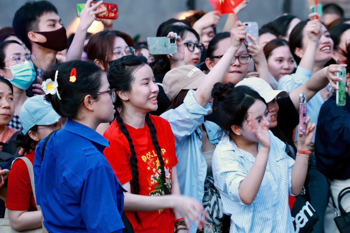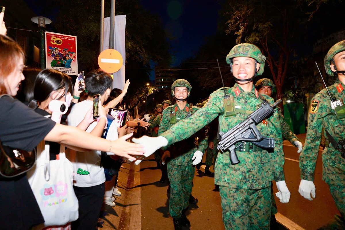 Rất đông người dân, nhất là các bạn trẻ đã đến đường Lê Duẩn để theo dõi tổng hợp luyện và cổ vũ cho các chiến sĩ, lực lượng tham gia diễu binh diễu hành.