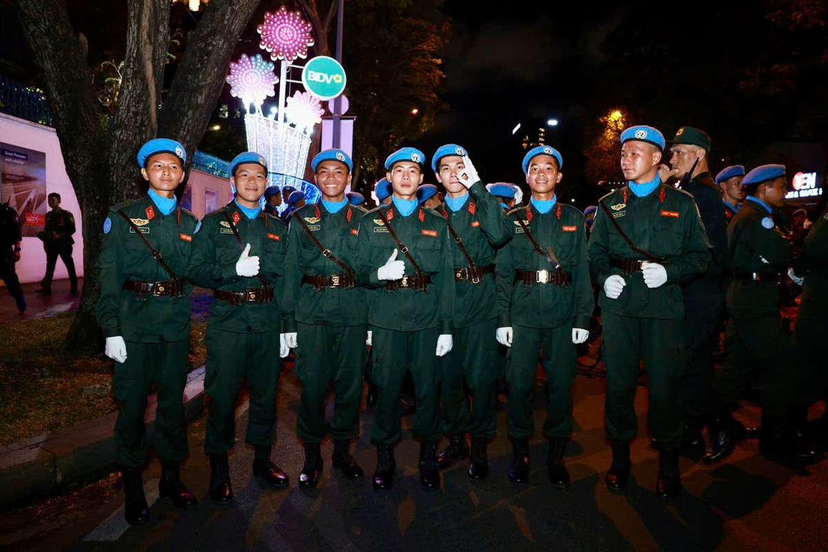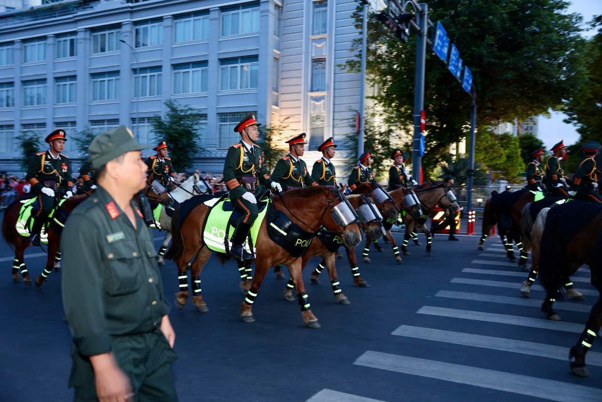 Khối nam CBCS Công an TPHCM vẫy chào nhân dân