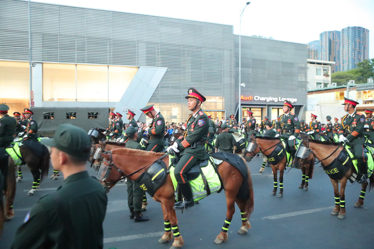 Đoàn xe chở theo lực lượng Kỵ binh CAND hướng về trung tâm TPHCM