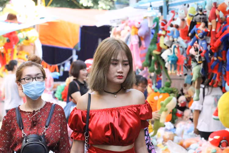 Tại phố Hàng Mã thời điểm chiều cuối tuần, dòng người từ các quận nội thành của Hà Nội cũng như các khu vực lân cận đổ về đây dạo phố, vui chơi vô cùng tấp nập.