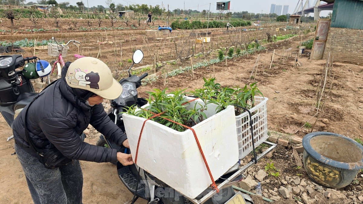 Chị Hương nhà ở phường Phú Thượng (quận Tây Hồ, thành phố Hà Nội) cho biết, sáng nay vừa mua được những thùng đào giống để trồng cho vụ Tết sau. Công việc "hồi sinh" vườn đào là một trong những công việc quan trọng nhất của nông dân trồng đào Nhật Tân ngay sau Tết.