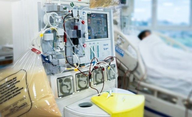 Tình trạng ông T. nhanh chóng chuyển nặng với biểu hiện suy thận cấp, bụng chướng căng, lượng nước tiểu giảm. Bệnh nhân được chuyển vào Khoa Hồi sức tích cực. Ê-kíp điều trị quyết định thay huyết tương để loại bỏ nhanh lượng mỡ đặc quánh trong máu. Sau can thiệp, triglycerid giảm mạnh xuống còn khoảng 5,1 mmol/L. Tuy nhiên, người bệnh vẫn phải lọc máu liên tục nhiều ngày để hỗ trợ chức năng thận và kiểm soát phản ứng viêm toàn thân.