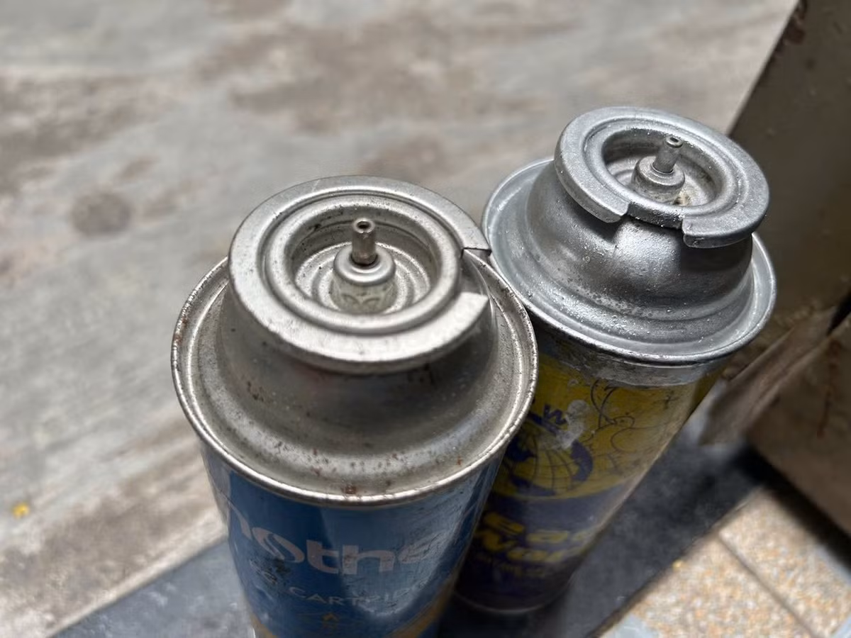 Đa số bình gas mini tái sử dụng nhiều lần đều có dấu hiệu rỉ sét, van gas bị móp mép, nguy cơ rò rỉ gas cao. Ảnh: Chinh Hoàng/Nguồn danviet