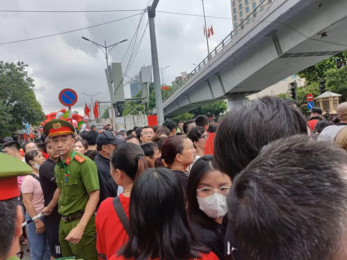 Đông đảo người dân có mặt tại ngã tư An Dương - Thanh Niên (Hà Nội) chờ xem các khối xe đi qua trong buổi sơ duyệt diễu binh, diễu hành ngày 27/8.