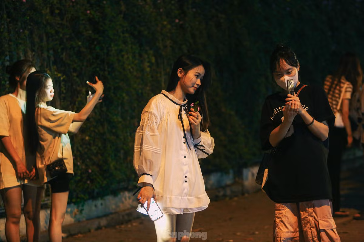 Nhiều người phải chờ đến tận khuya mới có góc để chụp ảnh trên con đường hoa này.