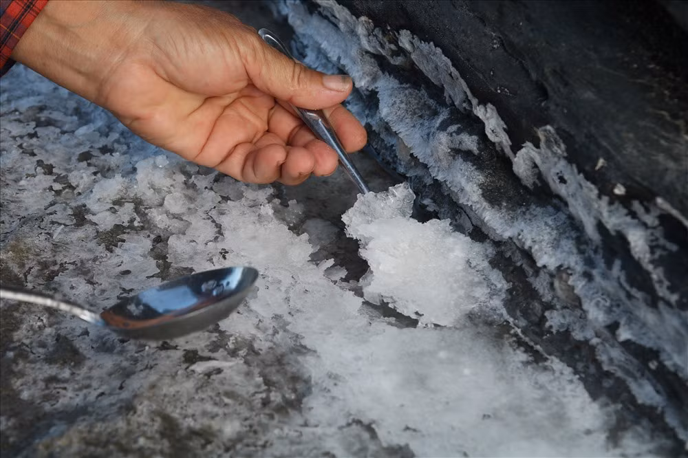 Muối kết tinh trên núi đá Bàn Than đẹp đến nao lòng.