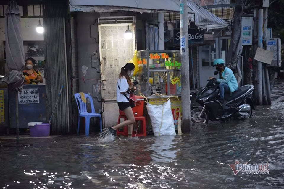 Khoảng 17h chiều 22/10, nước trên hệ thống sông, kênh rạch ở TP.HCM dâng cao tràn lên mặt đường, hẻm gây ngập úng ở nhiều điểm.