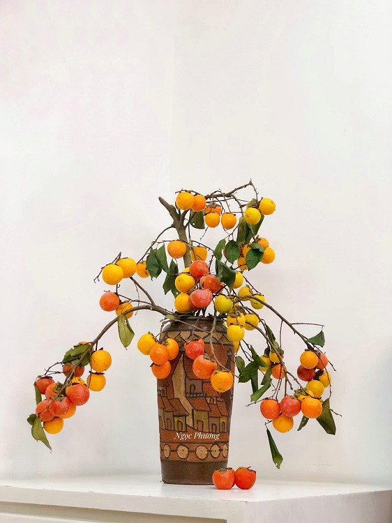 Chị Bảo Thoa (Cầu Giấy, Hà Nội) chia sẻ: “Vốn thích cắm hoa nên tôi hay tìm tòi những loại hoa lạ, năm nay thấy trong các hội nhóm mọi người kheo ảnh cắm cành hồng tươi nên tôi cũng nhờ bạn mua hộ mấy cành, cắm lên rất ưng ý. Quả hồng khi chín vẫn có thể thưởng thức như những loại hồng thông thường”.